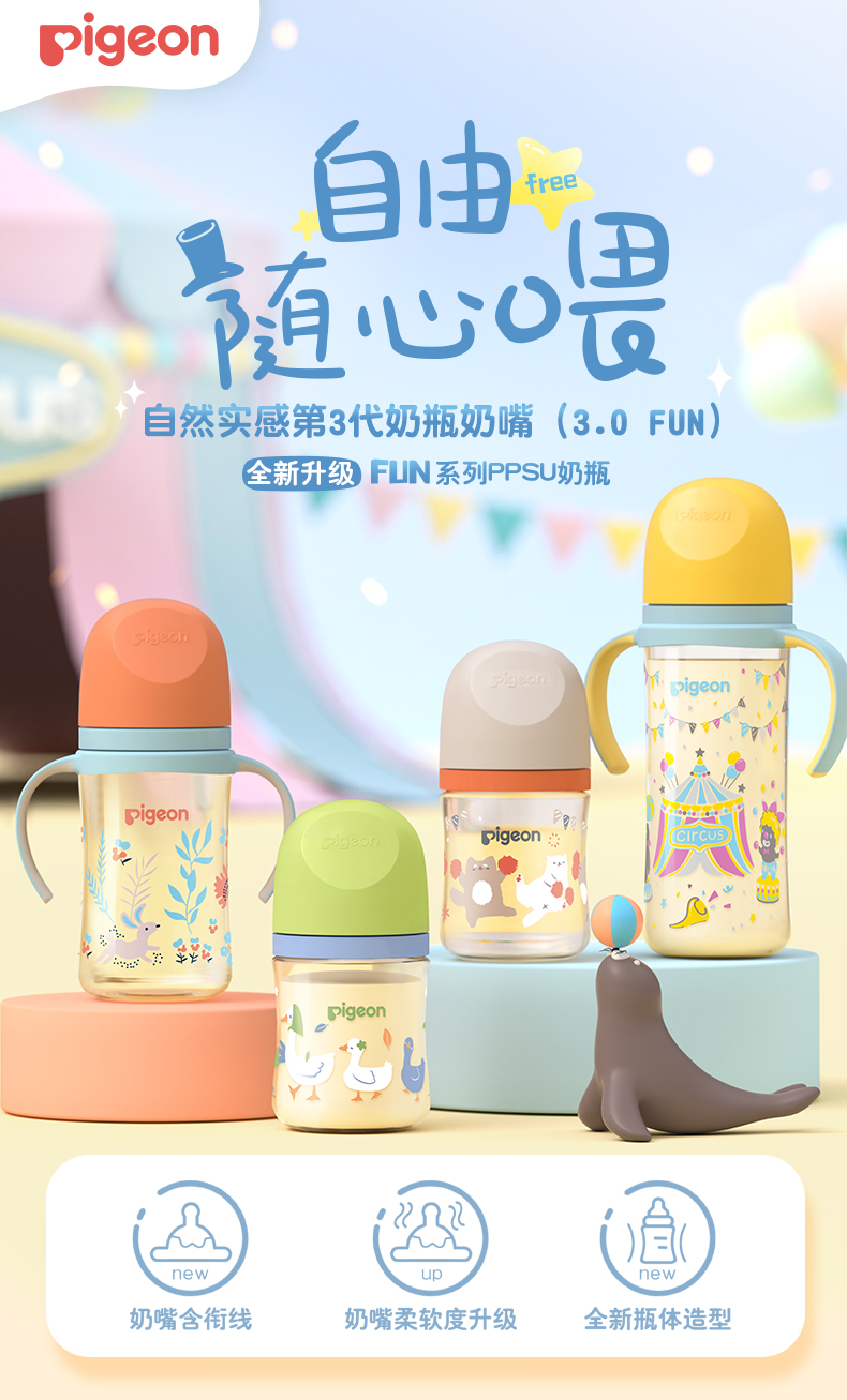 商品名称:贝亲(Pigeon)自然实感第3代 双把手奶瓶 240ml-丛林小兔 M号 3个月以上 AA218